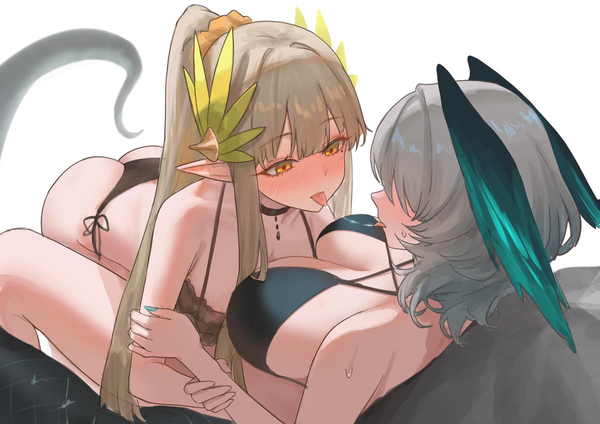 拘束されたホルハイヤがミュルジスに膣内をかき回されて感じたり、キスをしながら貝合わせをして気持ちよくなっちゃう♡
