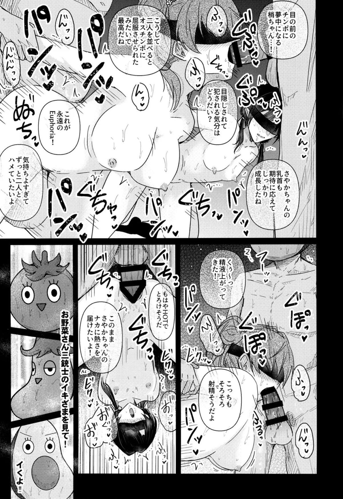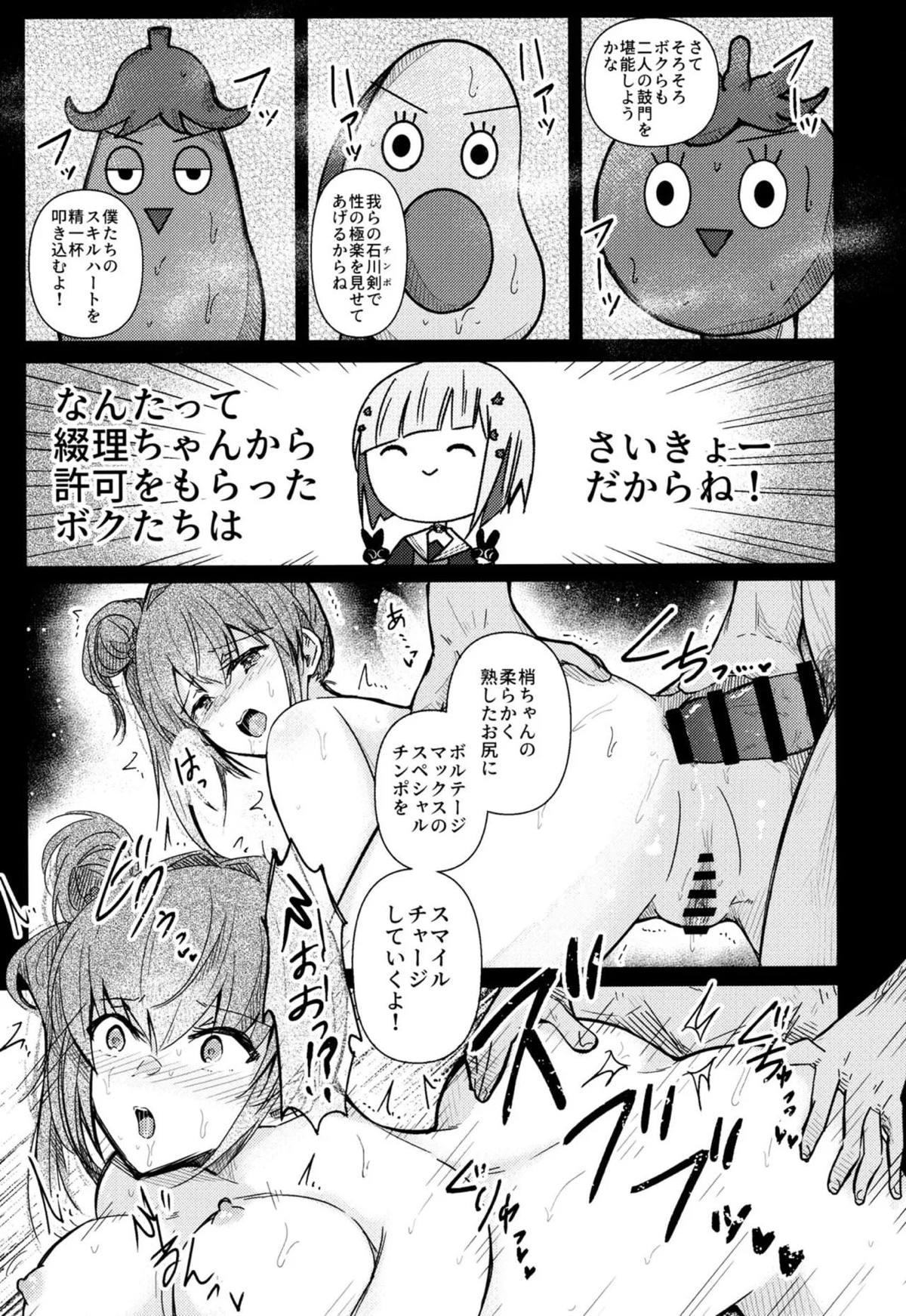 ふたなり花帆が吟子にごっくんフェラされたり、姫芽と瑠璃乃と慈がバックや騎乗位でふたなり百合3Pするフルカラー漫画♡