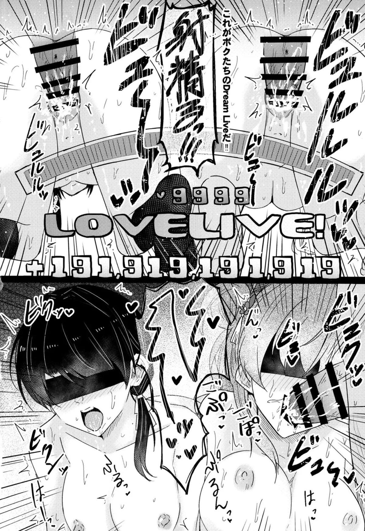 さやかと花帆がスク水姿で百合H配信をする薄い本!!さやかが乳首責めされたり、花帆が拘束されて電マ責めされたり…♡