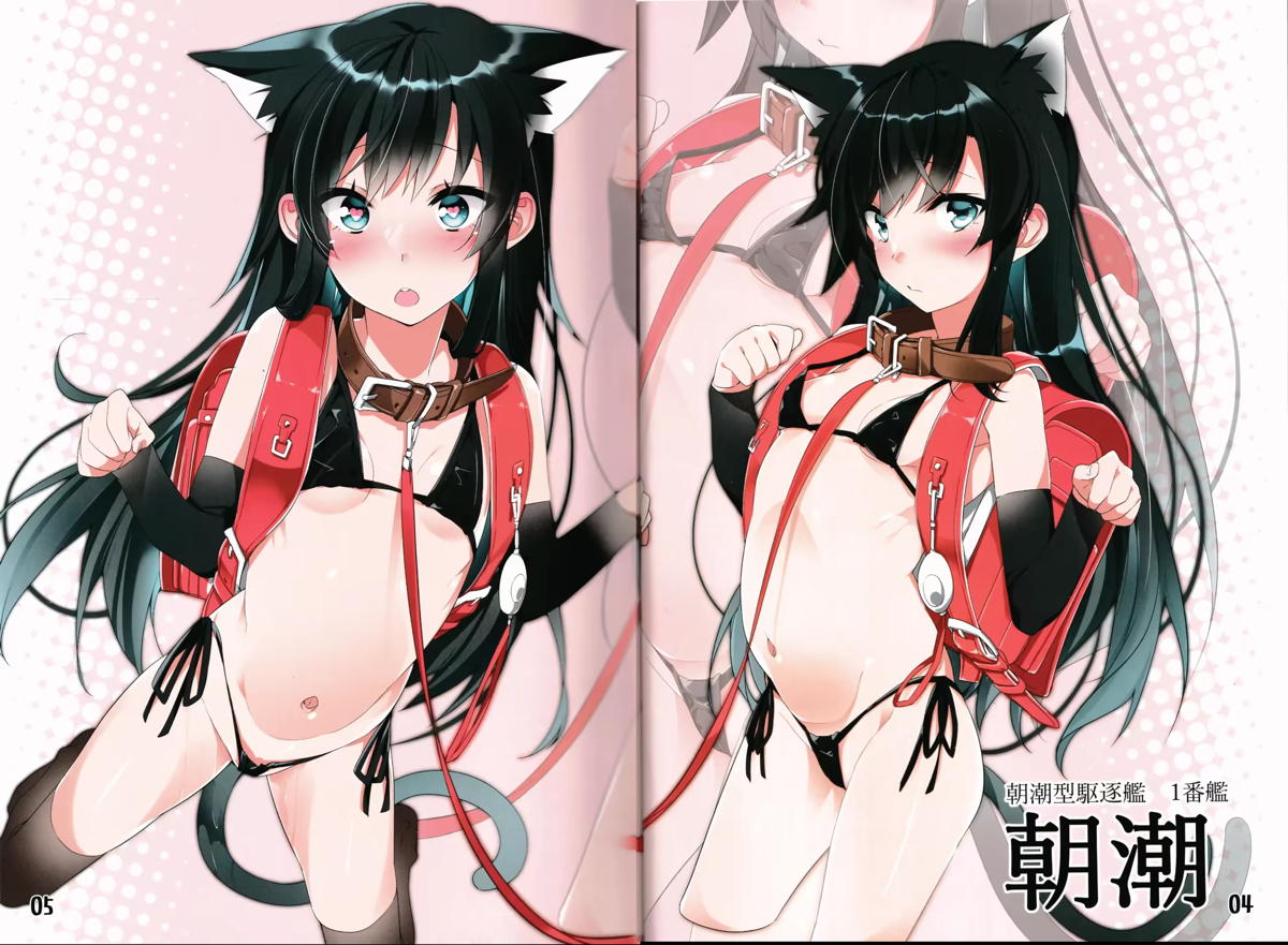 スク水を着た朝潮&霞のフルカラー本!!正常位やバックでハメて中出しされたり、ダブルフェラしちゃう!!