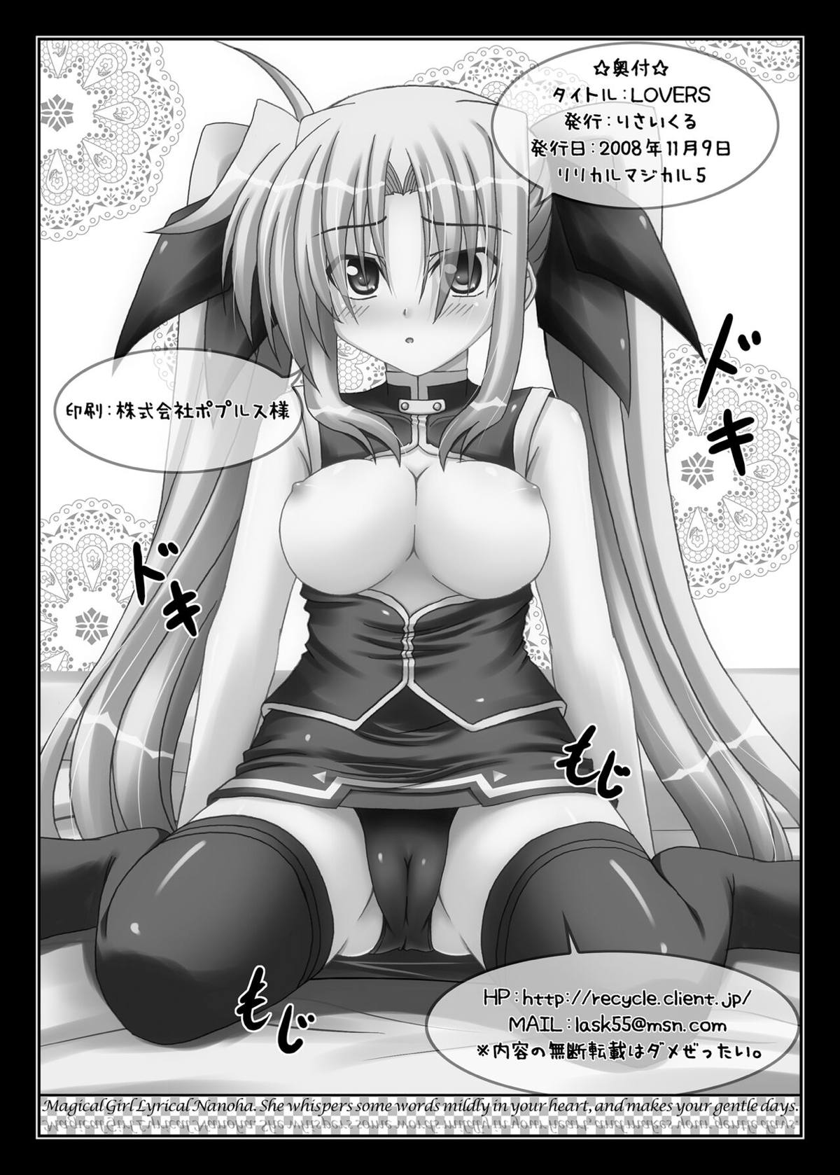 レースクイーンコスのはやてやフェイト達が乱交するフルカラー本!!手コキやパイズリをしたり、正常位やバックでハメて乱れちゃう♡
