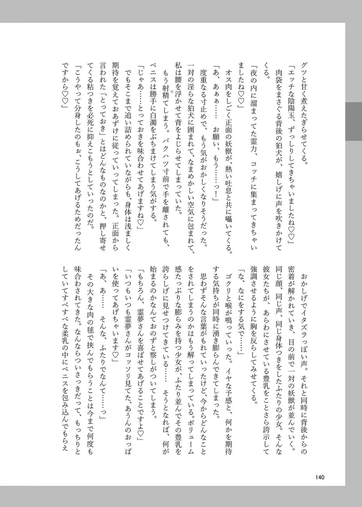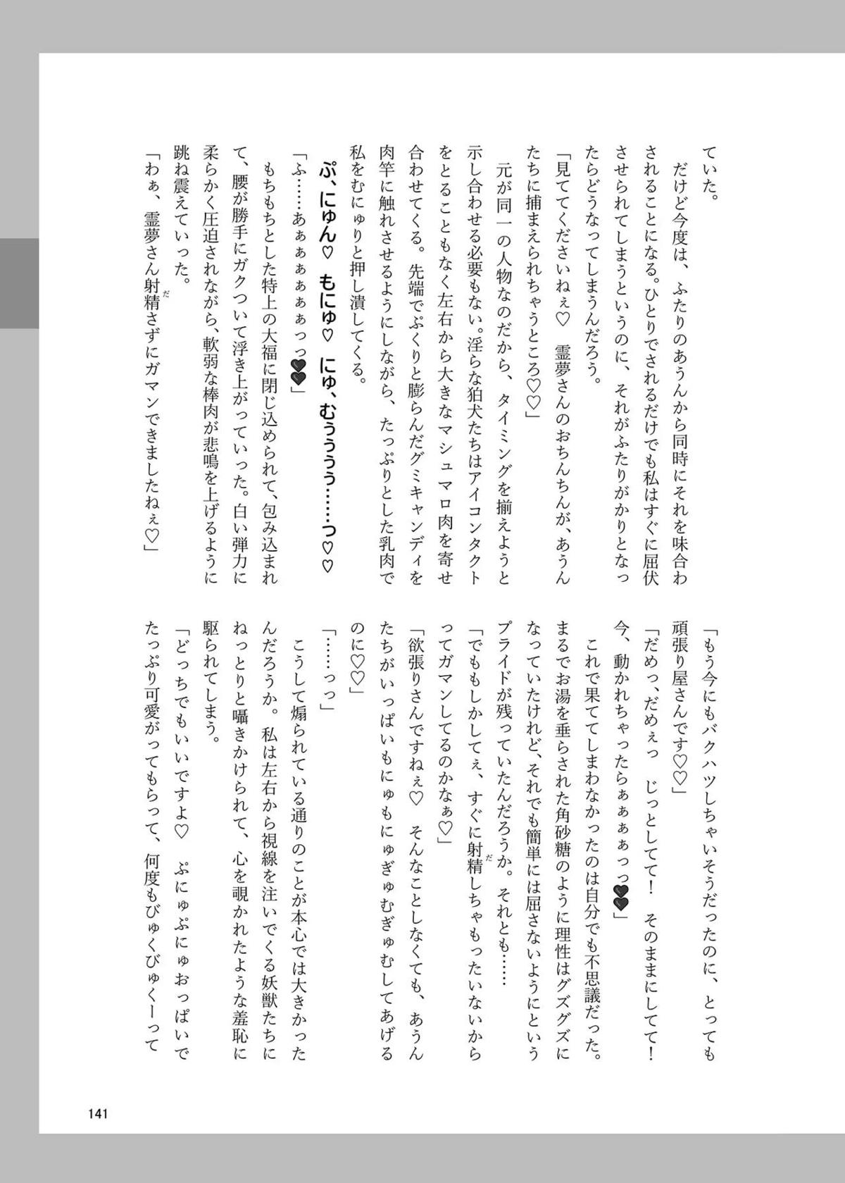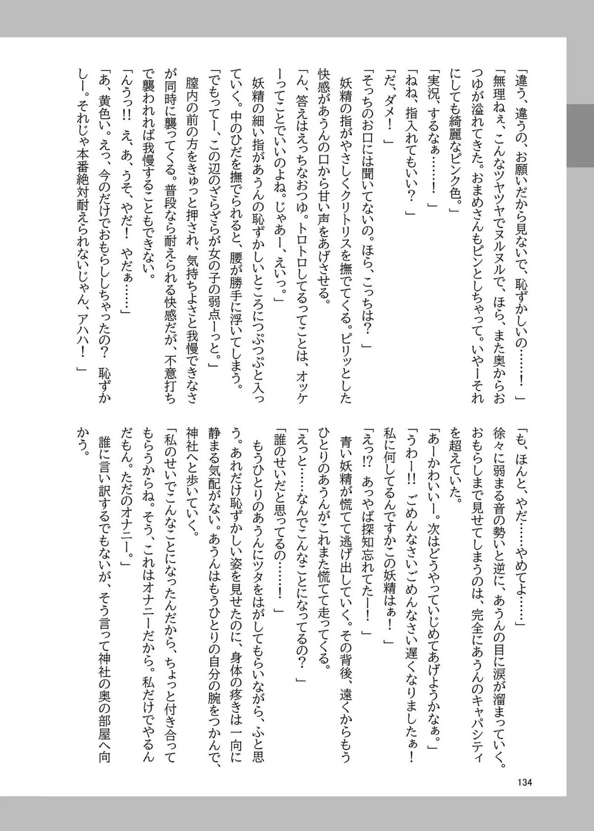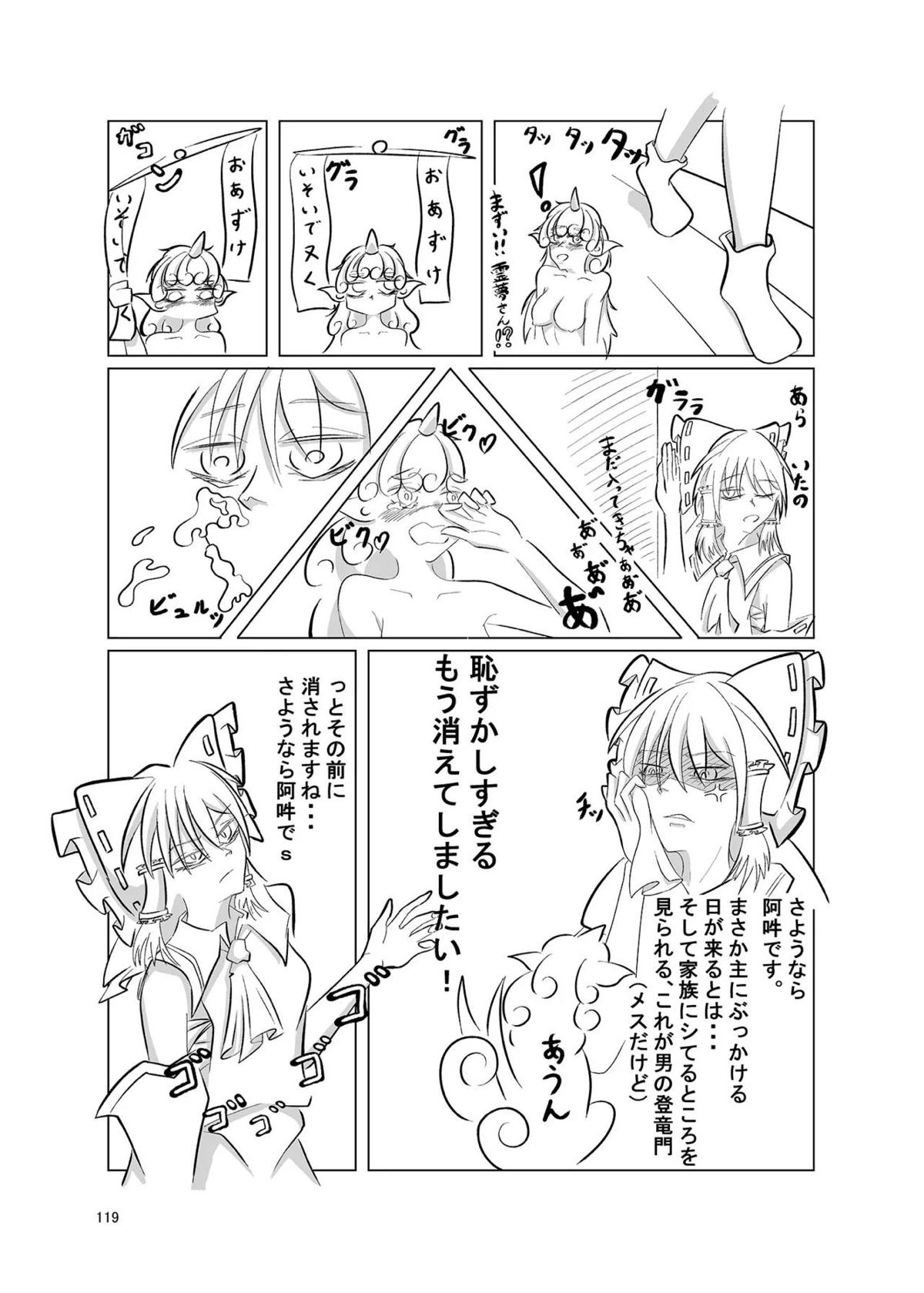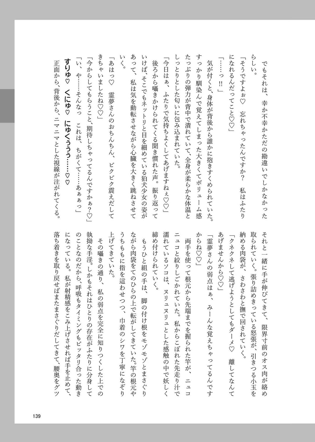 霊夢がフェラや正常位SEXしてるのを見てあうんがオナニーしたり、成美がバックで犯されてしまったり…