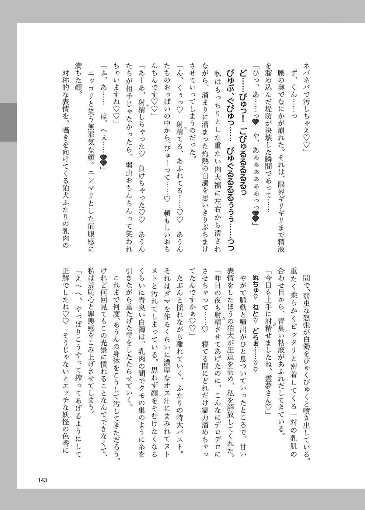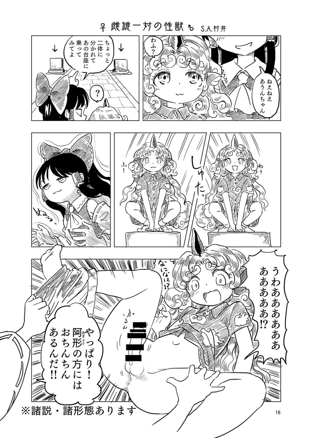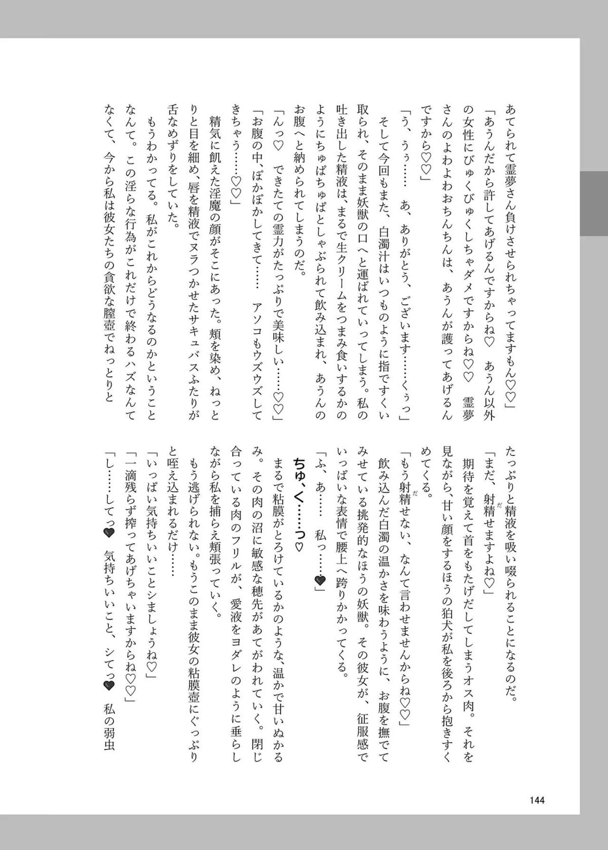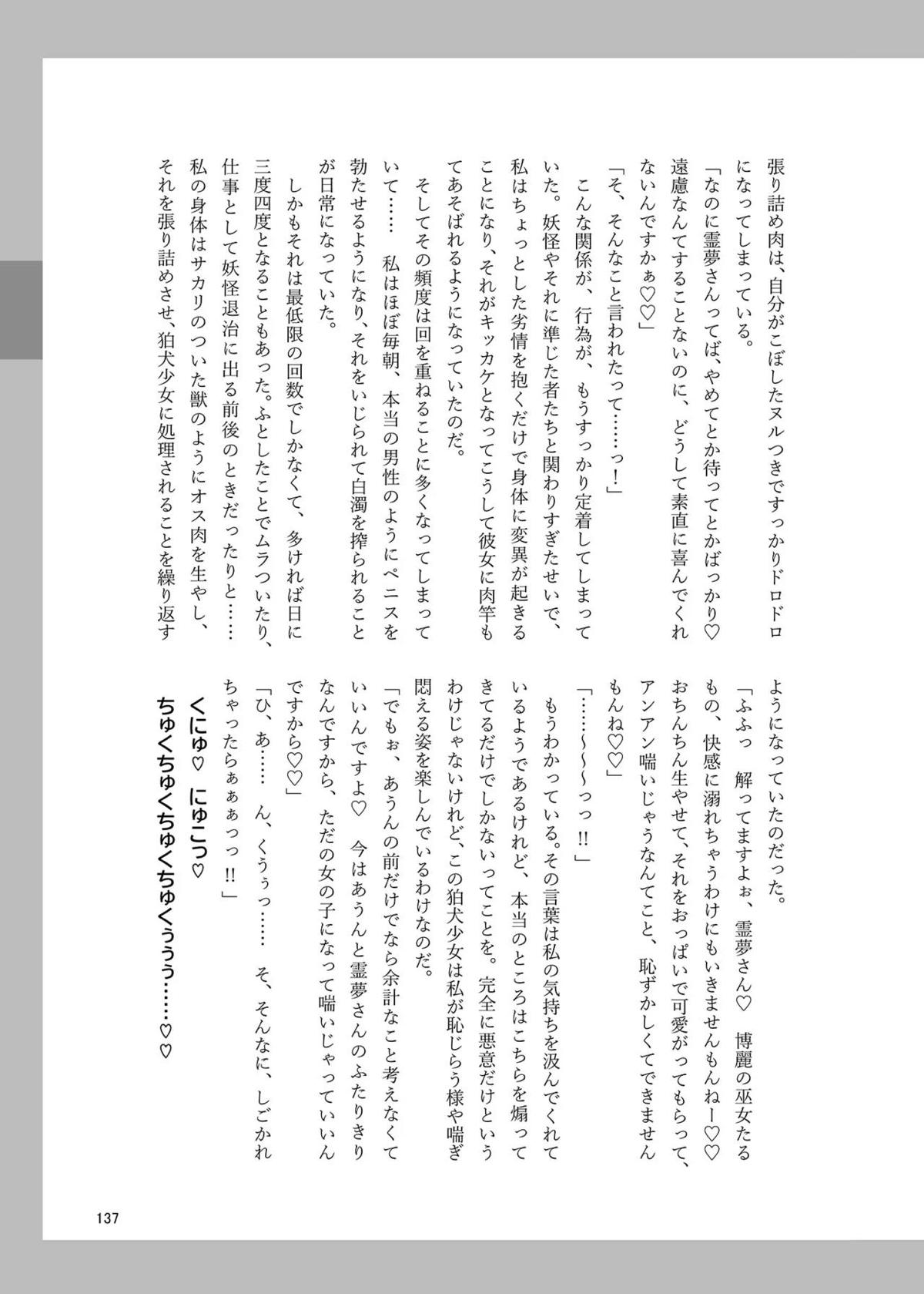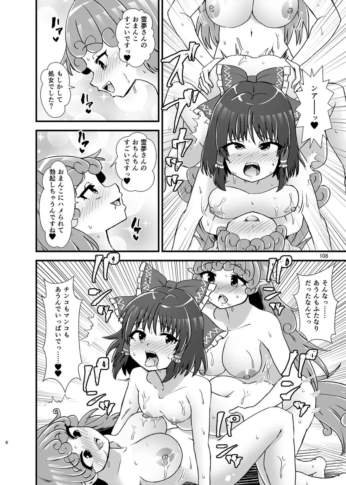 霊夢がフェラや正常位SEXしてるのを見てあうんがオナニーしたり、成美がバックで犯されてしまったり…