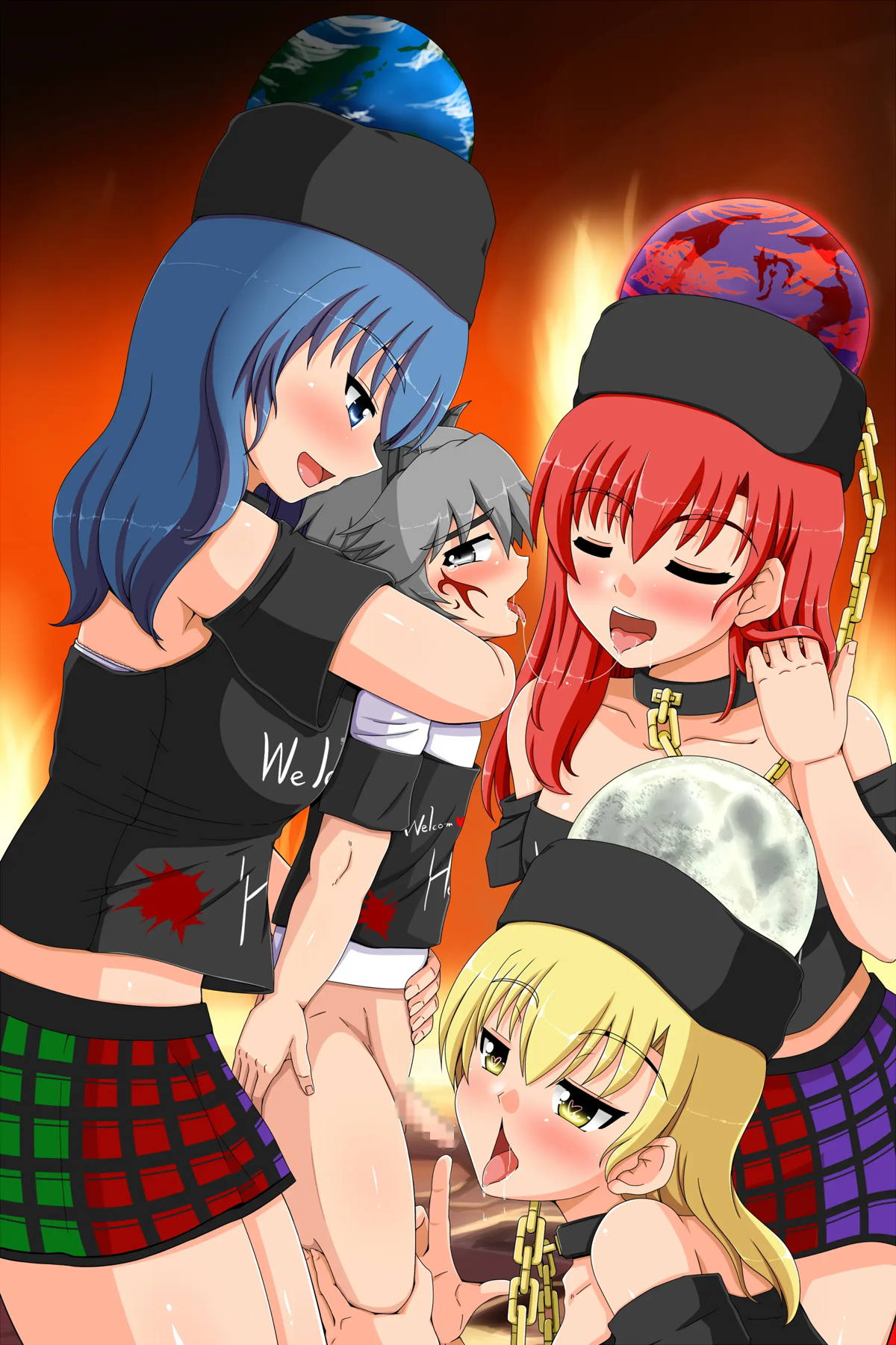 慧音先生がフェラしながら正常位でハメられたり、天子が二穴を犯されて感じてしまう…