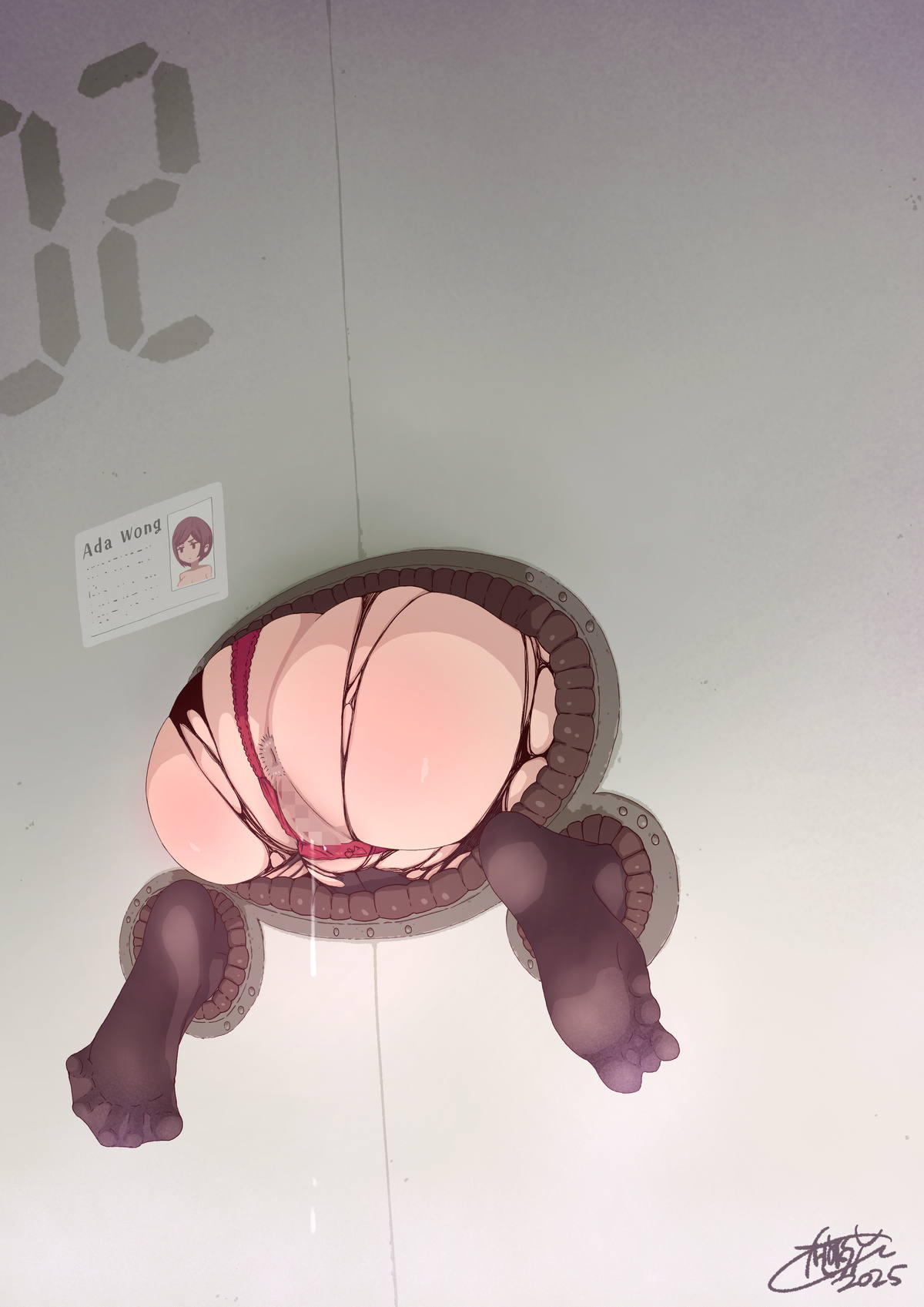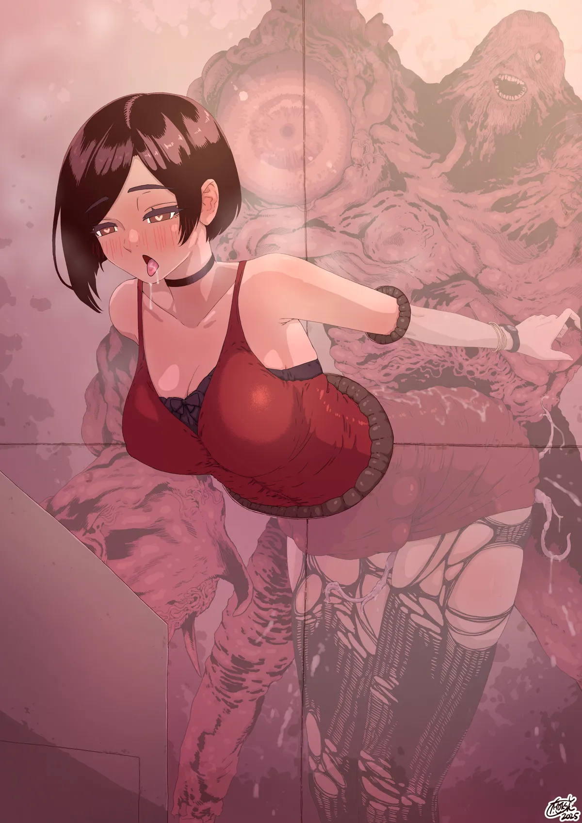 エイダはゾンビ達にベロチューされたり、触手で拘束されてウイルスの子種を注がれていく…‼︎