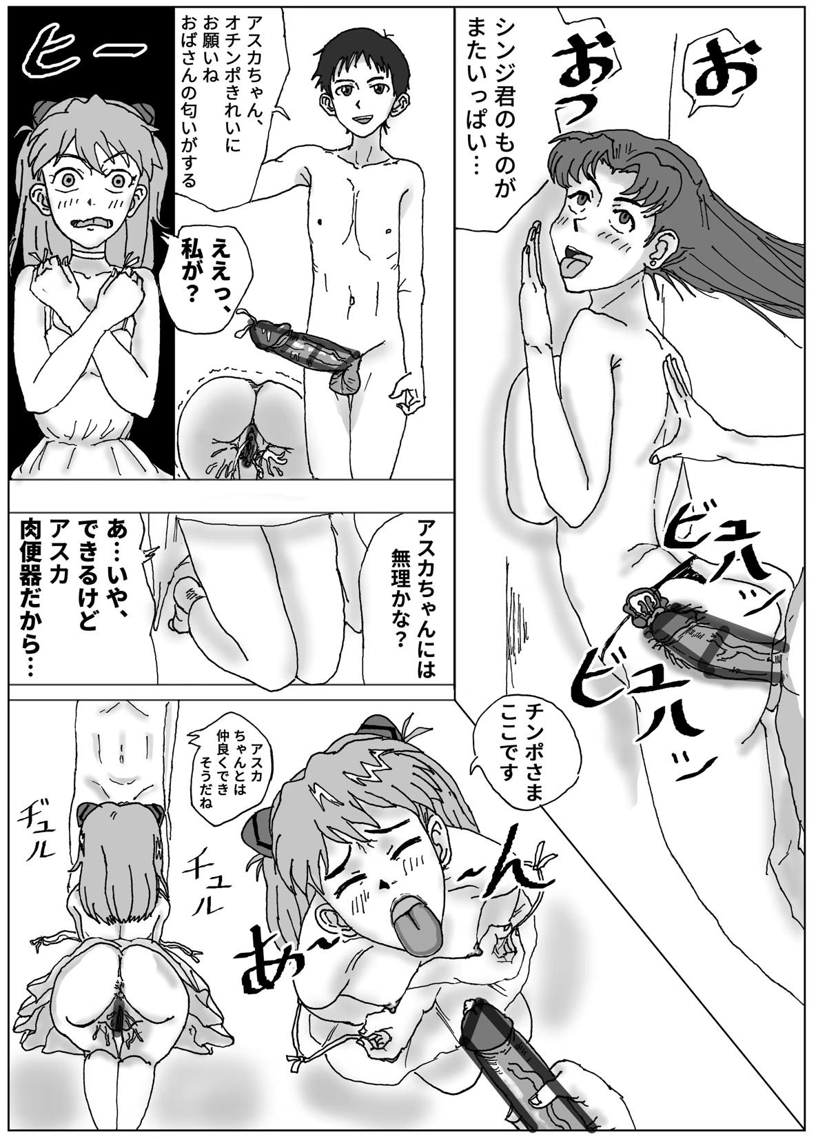 ミサトがシンジと騎乗位でハメて感じたり、レイがバックで犯されながらアスカにクンニしたり…♡