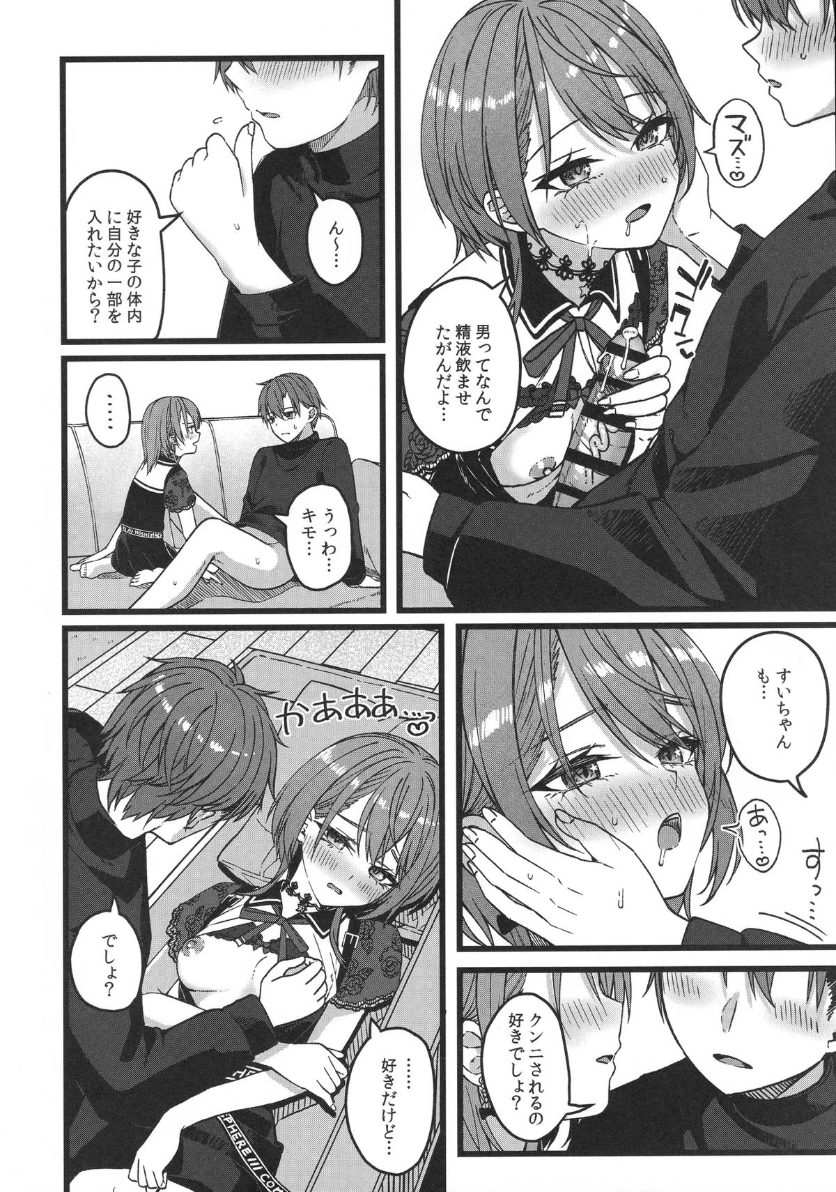 みこちがすいちゃんの衣装を着て授乳手コキしたり、裸にスタジャンを着て正常位でイチャラブHする同人誌♡
