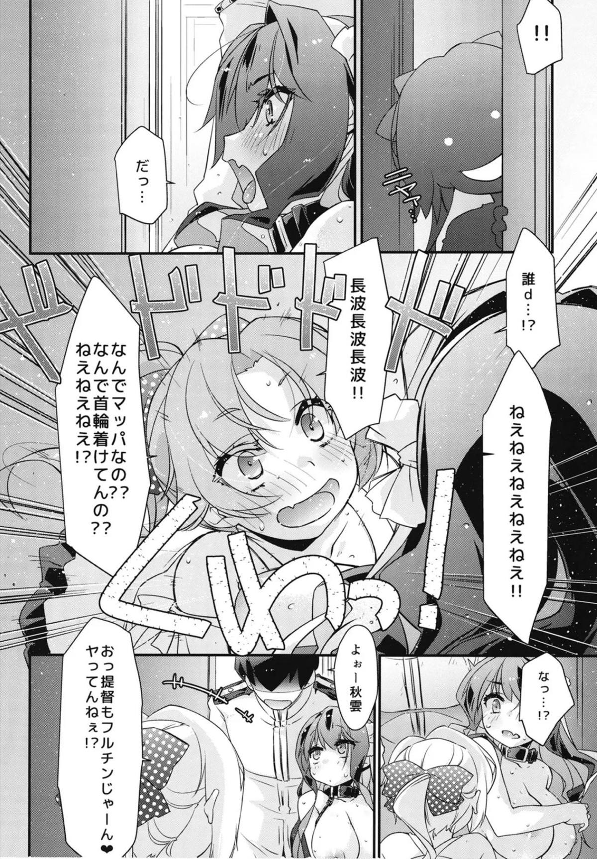 首輪をつけられた長波が提督のおチ◯ポをしゃぶって興奮したり、バックで激しく突かれて潮吹きアクメしちゃう♡