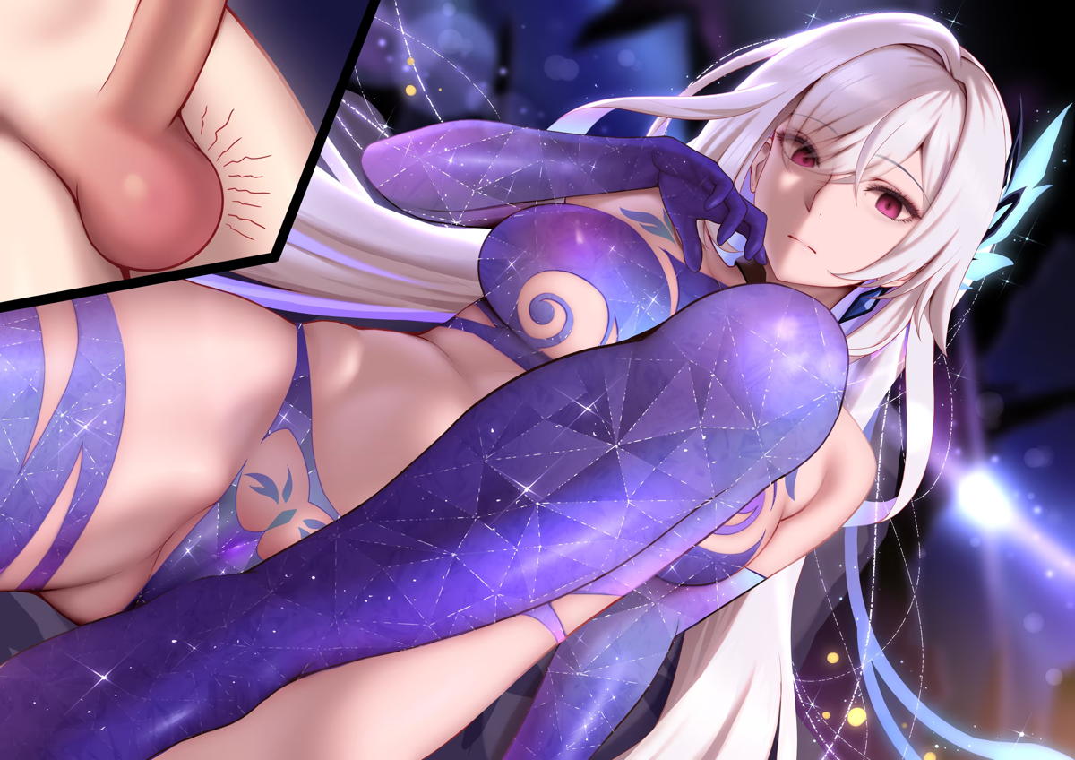 ドレス姿のセイバーが高層ビルのガラスに両手をついて背後からアナルをパコられたり、体を締め付けられながら騎乗位で中出しされる!!