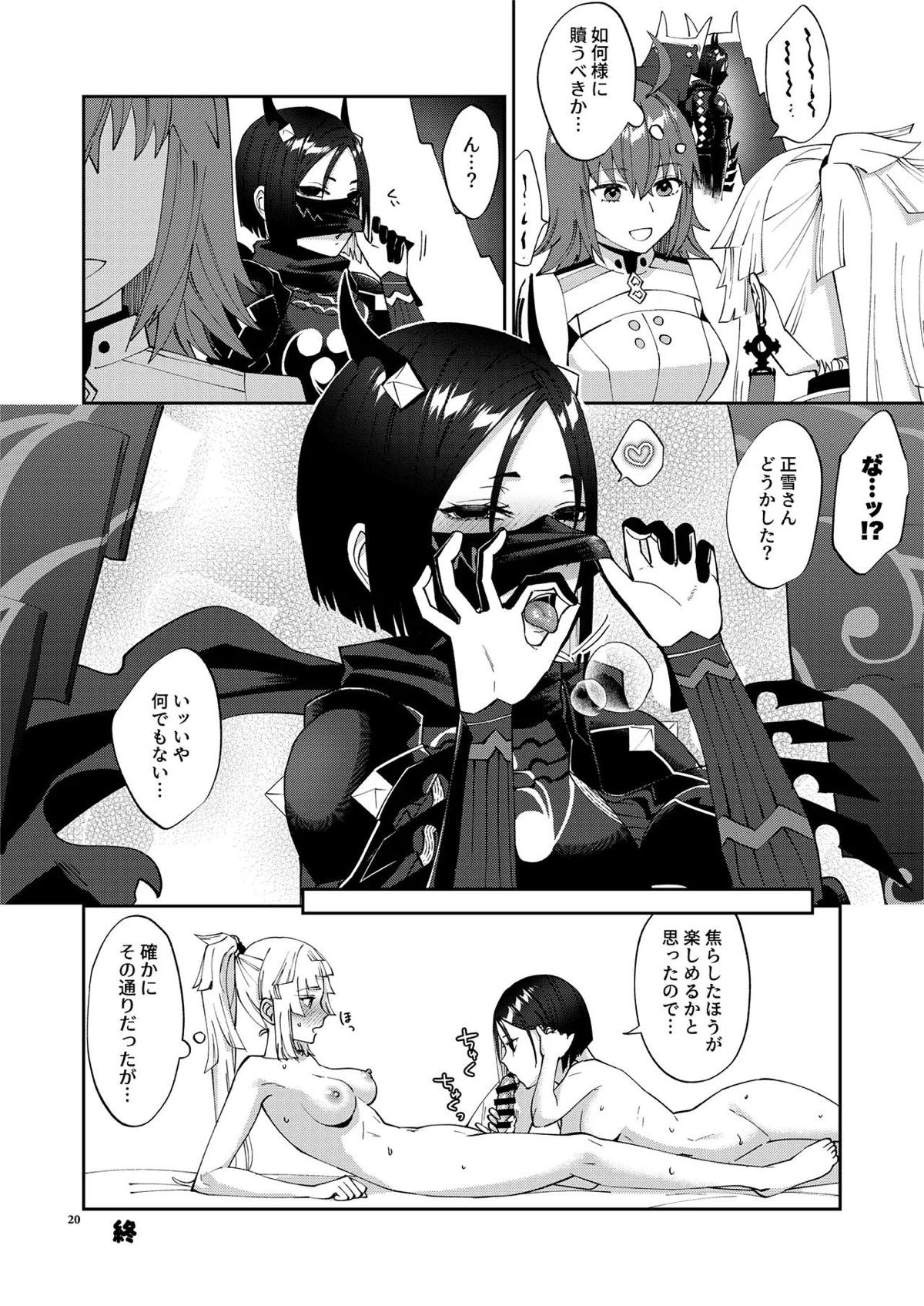 酒呑が頼光にベロチューしながら手マンされて感じたり、頼光がクンニされて潮吹きイキしちゃう!!