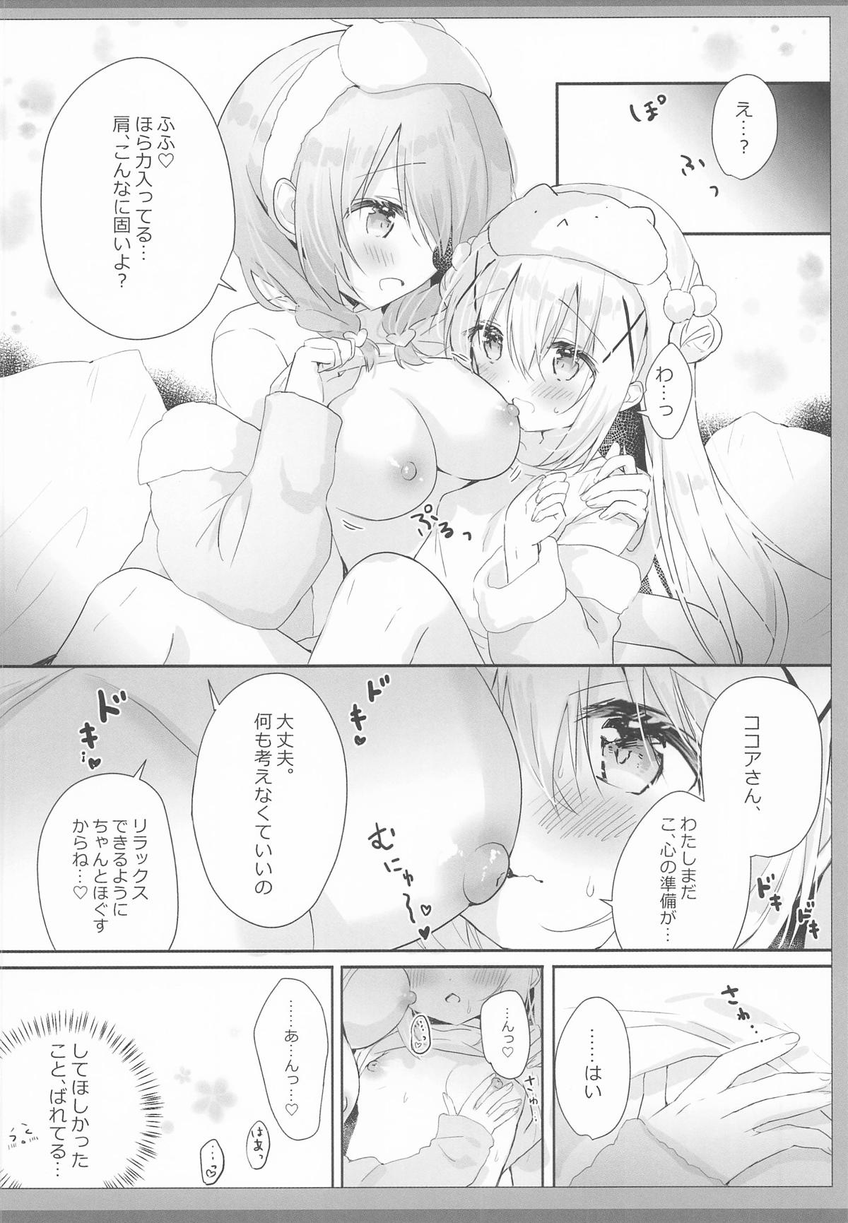 ココアがチノの布団の中で全裸になって待機!!帰ってきたチノにおっぱいを揉ませたり乳首合わせや貝合せで百合Hする♡