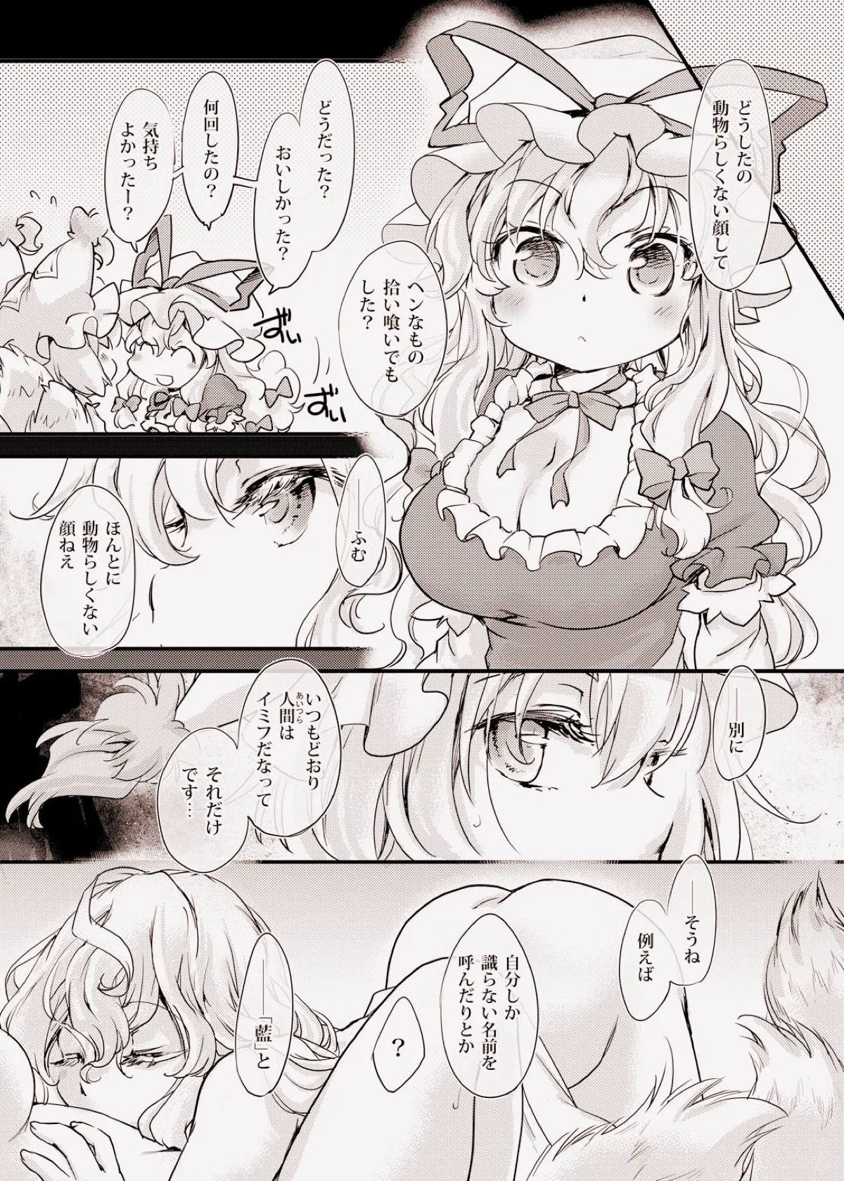 妖力切れでケモ化した藍と橙が拾ってもらった男のチ◯コを素股やWフェラで搾精したり、正常位やバックでチ◯コをハメて乱れちゃう♡
