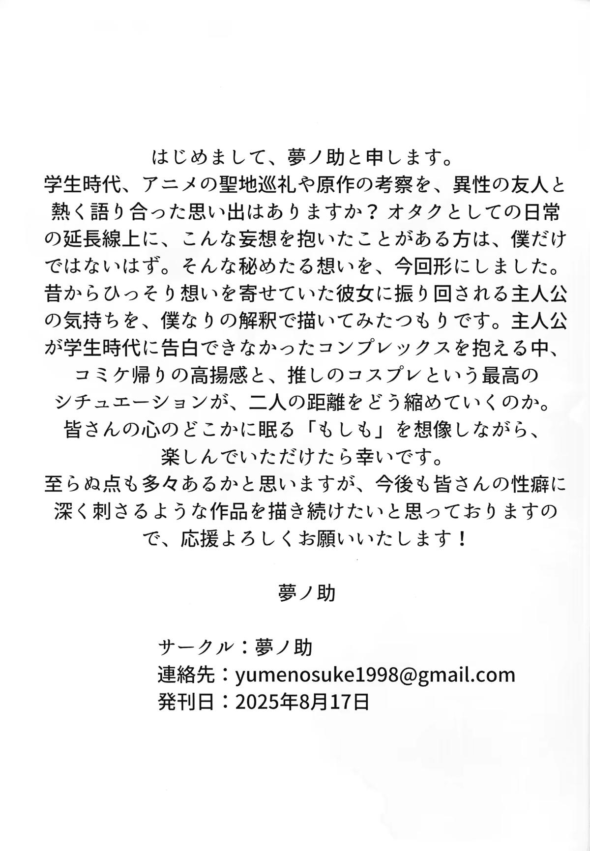 オタ友がコミケ疲れで我が家に泊まり、コスプレ姿で性欲解放しちゃう話