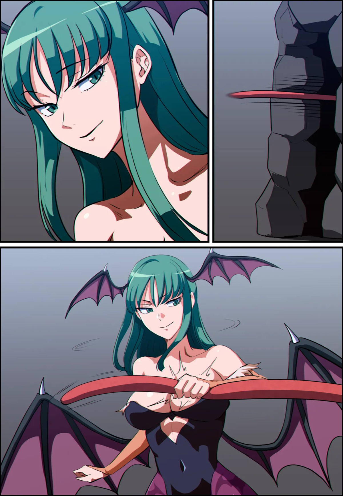 ふたなりのモリガンとリリスがバックで激しくパコったり、張り付けられたリリスがモリガンに紐でマ◯コを責められちゃいます‼︎